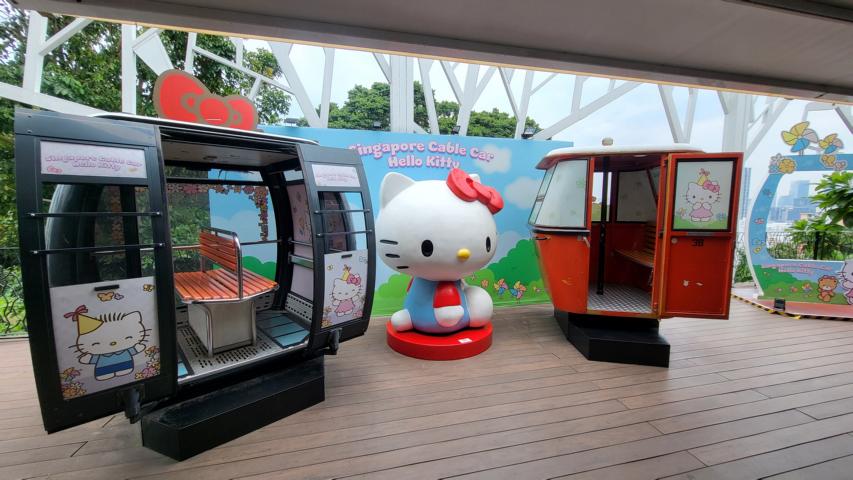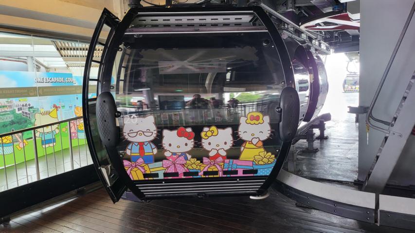 Nach der Tour sind wir mit der MRT (UBahn) zum Hafen gefahren und sind mit der Seilbahn (Singapore Cablecar) zuerst zum Mount Faber und dann nach Sentosa gefahren. Richtig niedlich mit den Hello Kitty Gondeln. Wir sind auf dem Mount Faber tatsächlich ausgestiegen und sind zum Aussichtspunkt gelaufen. Muss man nicht, wir wollten aber und hatten Zeit. Die Seilbahn kostet natürlich wieder extra. Das Ticket kann man auch schon von Deutschland aus reservieren und kaufen. Man kann auch nach Sentosa über die Fußgängerbrücke laufen (kostenlos), mit dem Bus oder mit der Hochbahn fahren (Sentosa Express: hin: kostenpflichtig/zurück: kostenlos).