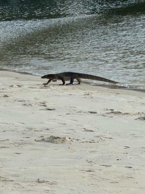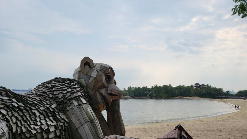 Auf Sentosa haben wir uns ein wenig umgeschaut, haben eine Tour über die Insel mitgemacht (nicht nötig und war auch nichts Besonderes) und haben uns dann an den Strand gesetzt. Schuhe aus, Füße in den Sand und auch mal mit den Füßen ins Wasser. Aber Achtung: Es gibt hier auch „nette Tierchen“, die auch gerne im Wasser schwimmen – siehe Bild! 🙂 Das war eine sehr lustige Erfahrung!